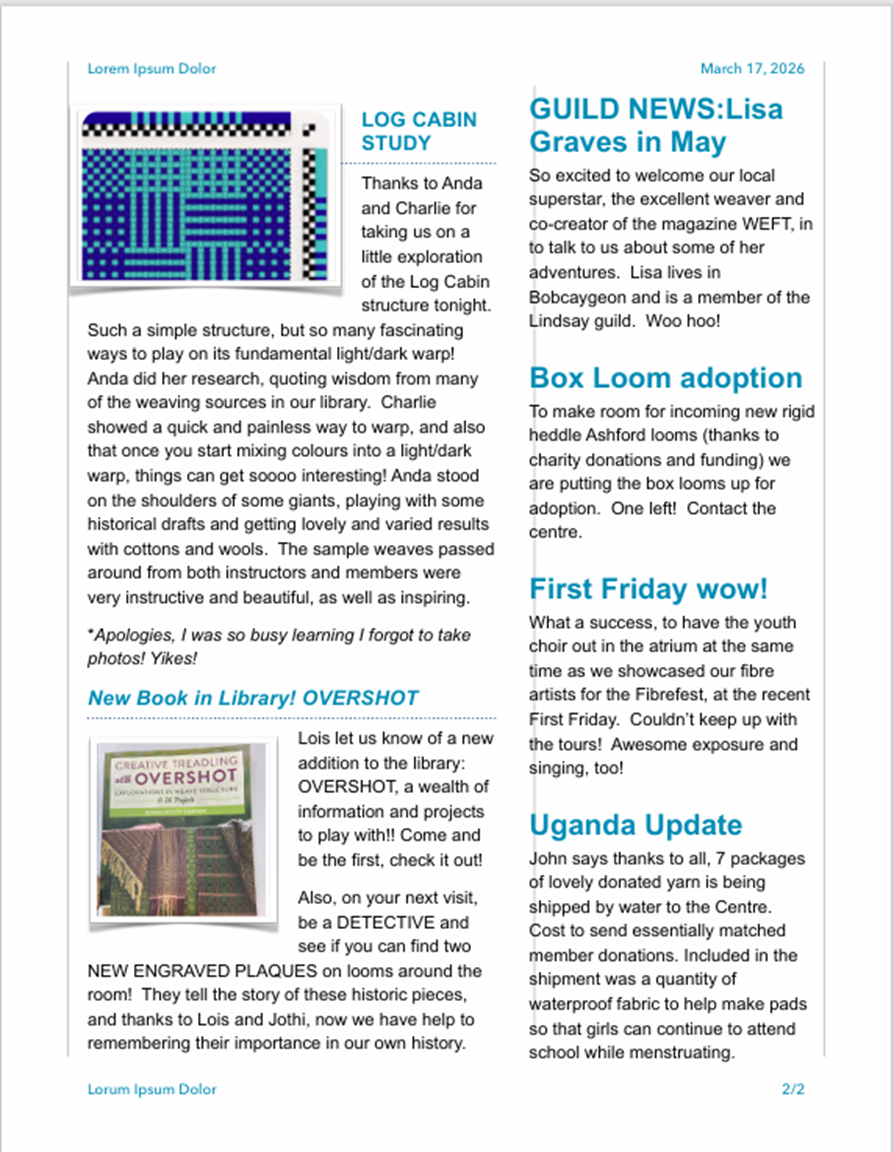 Our first Guild meeting for 2025-2026 is on Monday, September 22nd. Membership is $60. At the Artisans Centre, Peterborough Square.