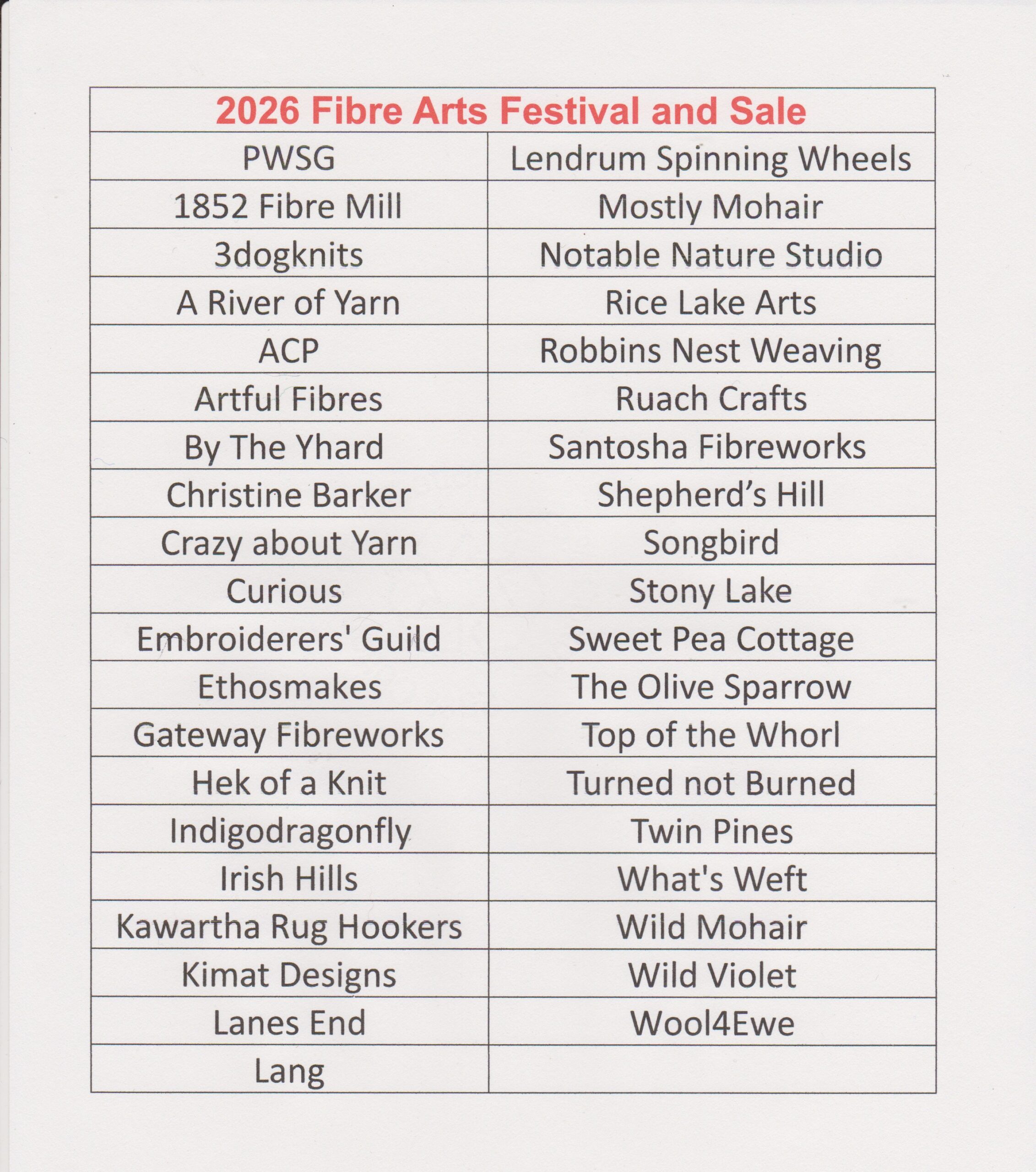 Vendors List for the Fibre Arts Festival & Sale